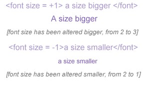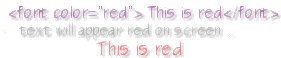Remember to end each font command by a < / font > tag. If not, your font types, colors and sizes will be all muddled up and thus not producing a desired effect.